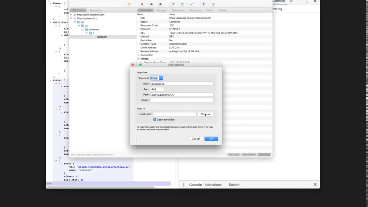 We can local map files and re-use environments for their data. That’s cool, but what happens when the API you are consuming suddenly breaks? Or what do you do when you are having to wait for a field to be added to the response you are getting? Welcome to the Web’s equivalent to “I’m waiting for it to compile.” For this completely not contrived example, we will take the Pokémon API. We have been waiting for a new caught boolean field to be added indicating that we have caught this Pokemon. However, it doesn’t appear this is going to be added anytime soon. Rather than waiting around for the field to be added to the versioned API, let’s use Charles to stub it out for us!