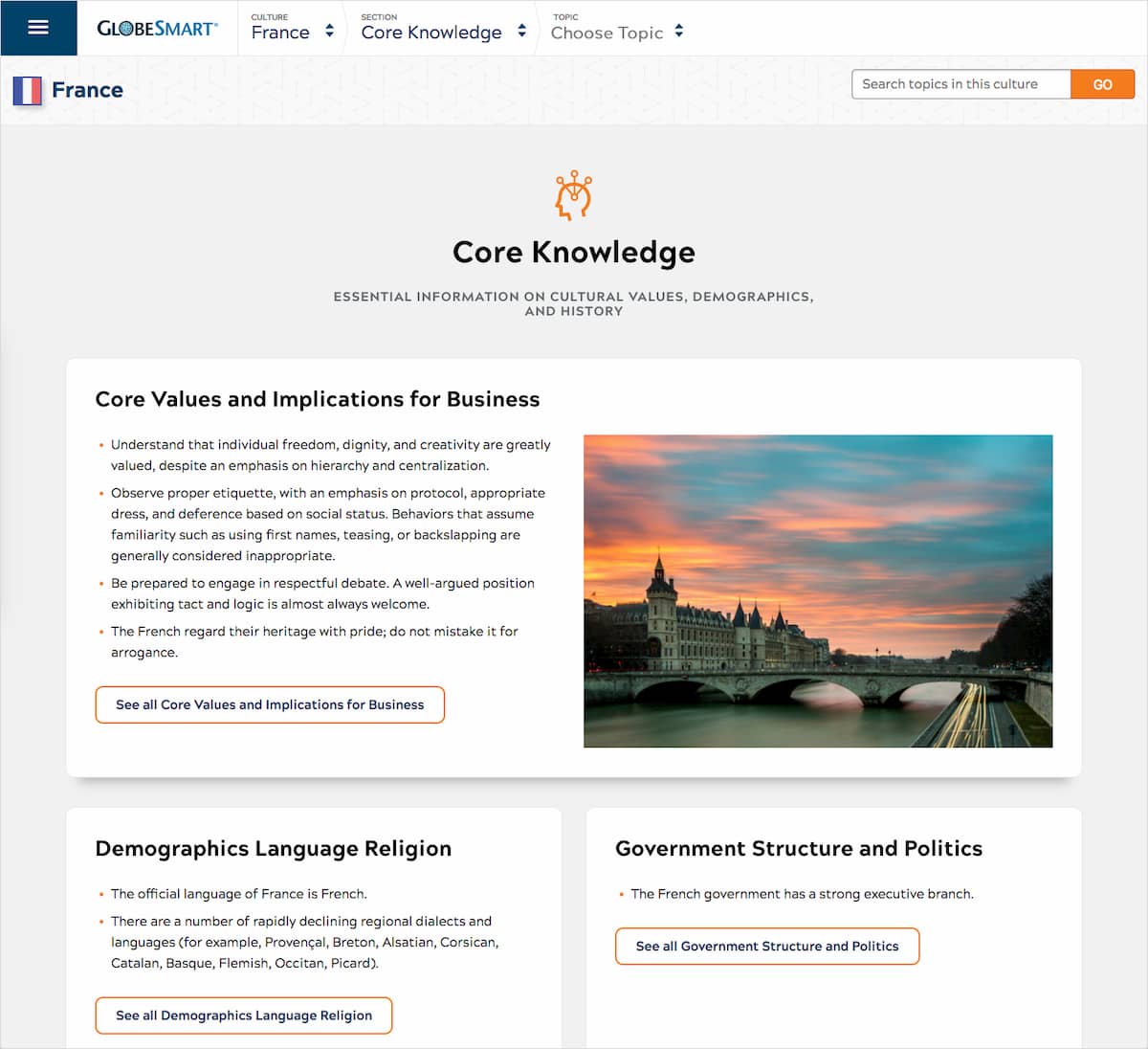 GlobeSmart's previous design was not mobile-friendly, so we began UX by thinking mobile-first to ensure that both the Work Styles product and Culture Guides library would be easy to use on any device. Direct feedback from users and Aperian's customer support team helped us to uncover inefficiencies and find ways to improve the interface.