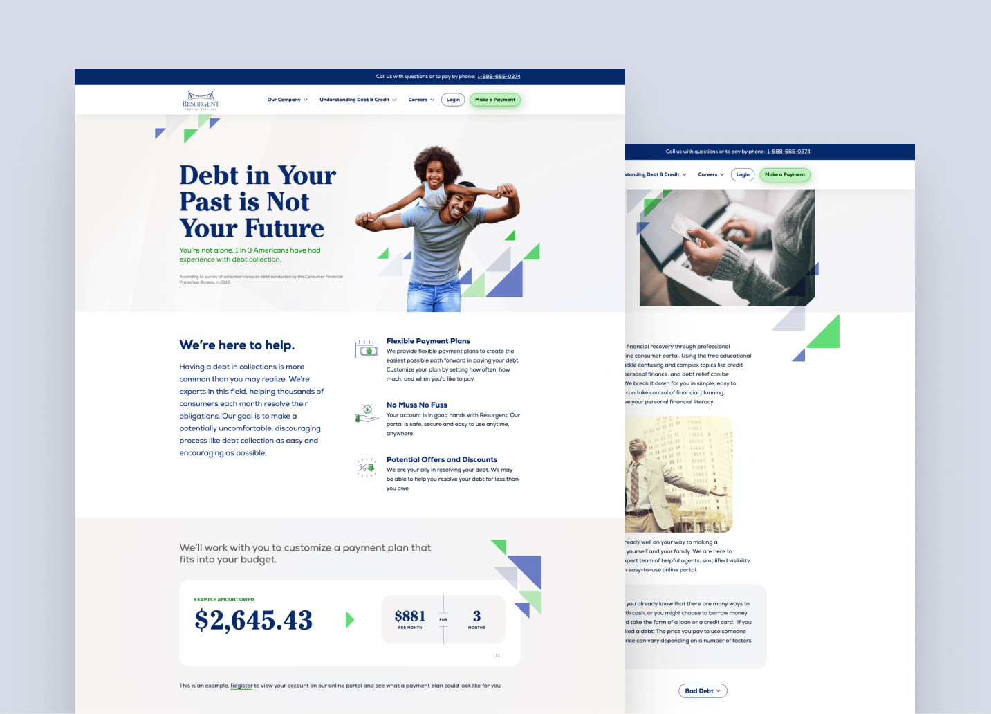 Sparkbox has worked with the Resurgent Capital Services team for the past couple of years to improve the look and feel of their public web presence. While our work with them on a refreshed design and more empathetic copywriting increased user engagement, their customer portal and account registration workflows had not been touched and were next on the list to modernize.