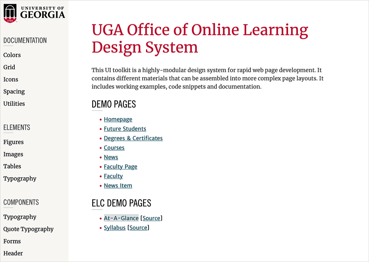 The Office of Online Learning (UGA Online), which has multiple websites and complex audiences of its own within the community, brought in Sparkbox to build a design system and to highlight and explain its value to others in the UGA community. Their ultimate vision was to see the tool evolve to serve teams beyond their own across the whole campus—a university-wide design system that prioritizes accessibility, efficiency, and consistency.